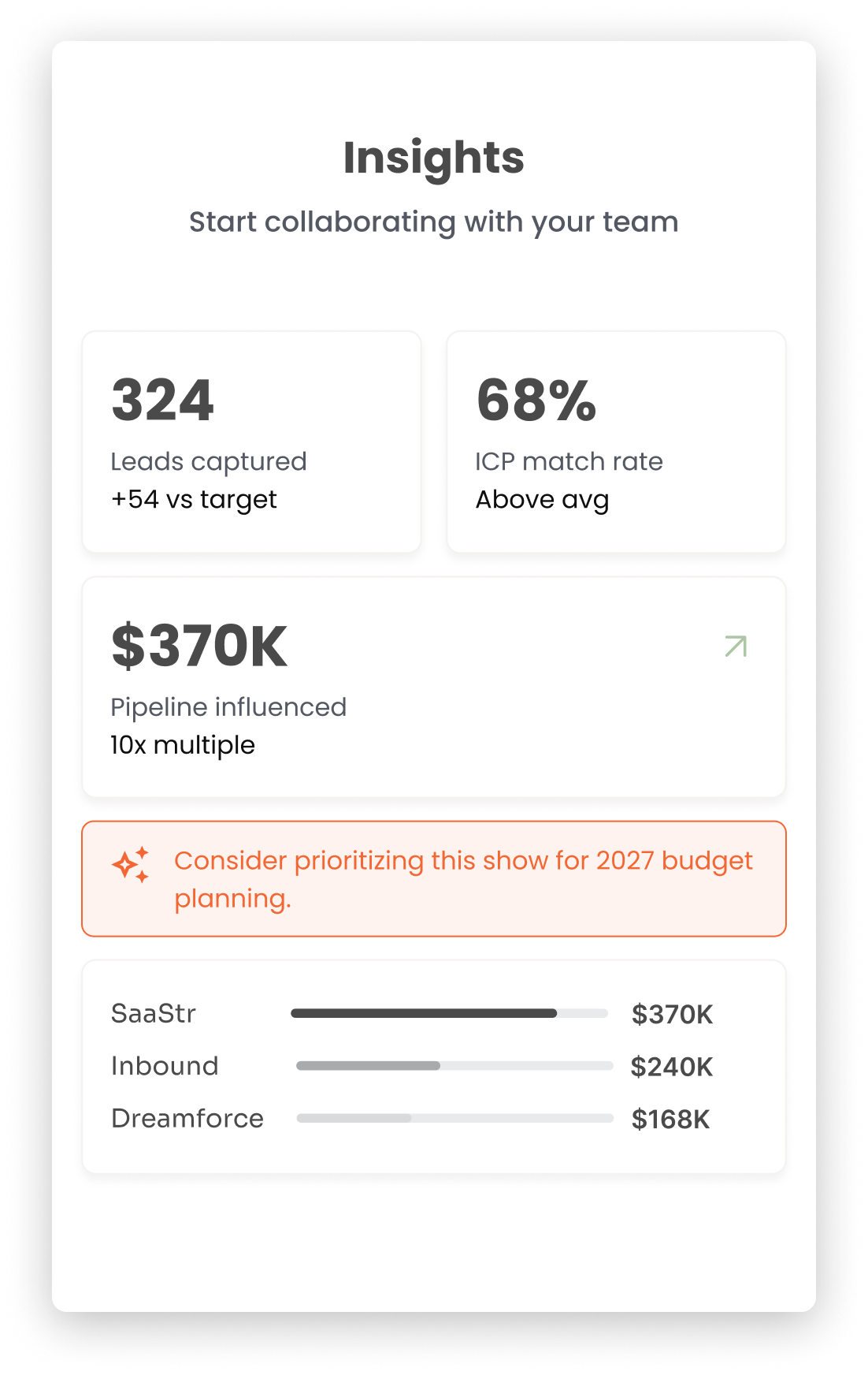 Insights takes your actual conversion data, blends it with captured lead data from Mobly, and produces structured analysis that tells you which events earned their budget and what to do differently next time.