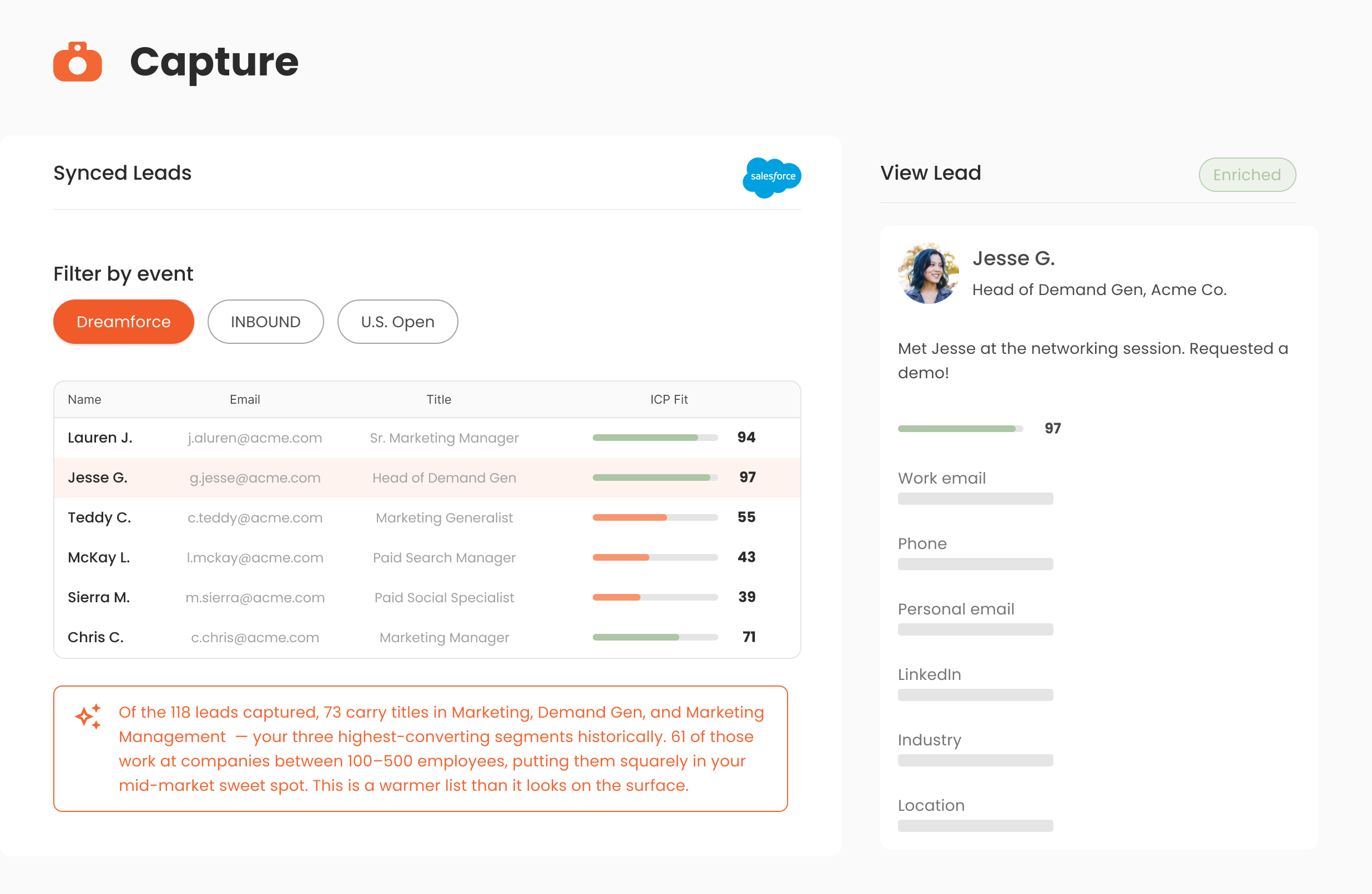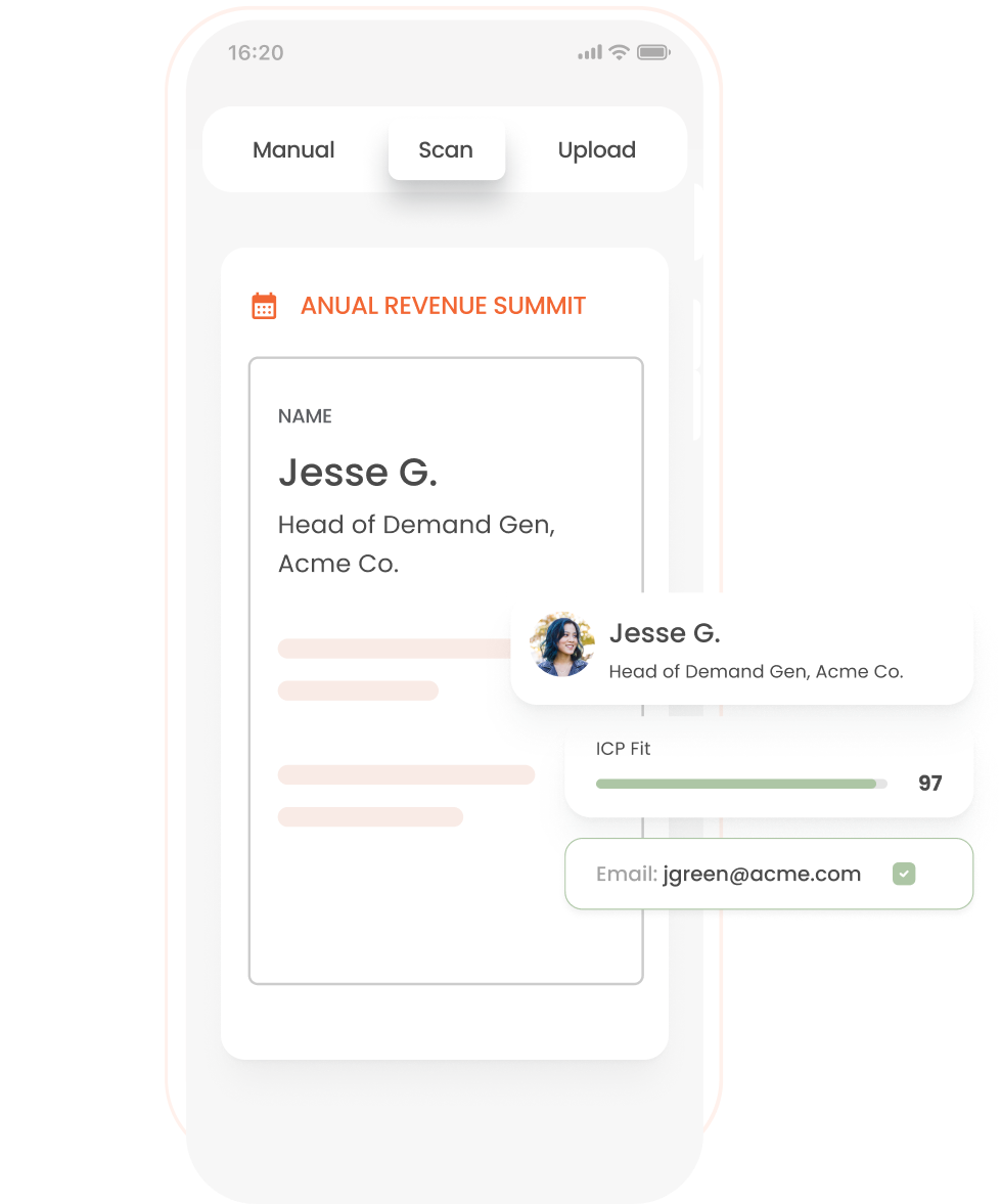 With real-time ICP scoring, you can quickly figure out which leads to focus on before you even leave the event. Plus, you'll know if the event is worth your time and money while you're still there.