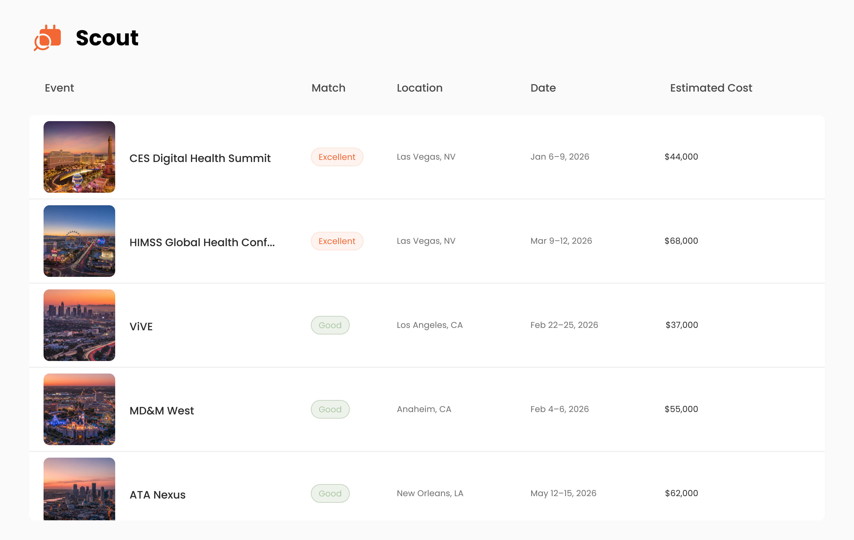 Browse a directory of thousands of events & discover new ones intelligently matched to your company’s profile.